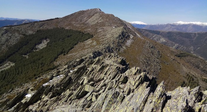 Continuamos un par de kilómetros  hasta desviarnos por un acceso empinadísimo, tomando una senda reciente creada por las máquinas madereras.Después de otro  importante desnivel  alcanzamos el Collado de Las Portillas , la cuerda en la cota de los 1665 m y donde ya divisaremos la mole rocosa de La Centenera (1809m). Ahora tenemos varios canales de ascenso y llegaremos a la cima por cualquiera de ellas. Ahora toca continuar por la cuerda hasta el Cerro de La Concha (1775m) y ya desde aquí y en claro descenso por la Loma de La Concha, tomaremos dirección a La Horcajada hasta el GR88 que tomamos a derechas hasta el área recreativa La Tejera en Puebla de La Sierra donde habremos dejado los coches. Sin moverlos del sitio, dejamos las mochilas y nos acercamos a la plaza del pueblo a tomar la cerveza.